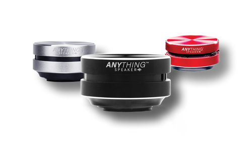 Our speakers use vibration to create sound by utilizing cutting-edge bone conduction technology. This eliminates the bulky parts needed by traditional speakers and allows Anything Speaker to be truly portable.